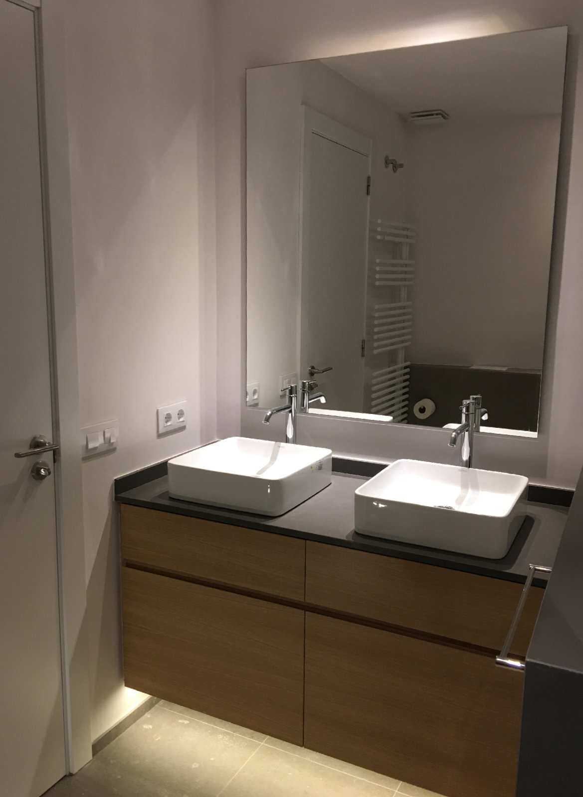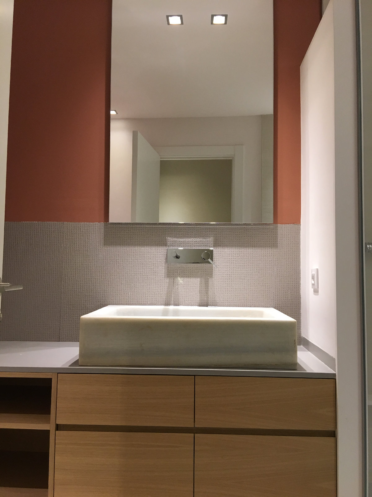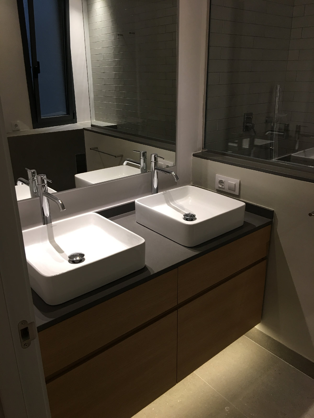 · Baños con mosaico de formato pequeño y grifería empotrada